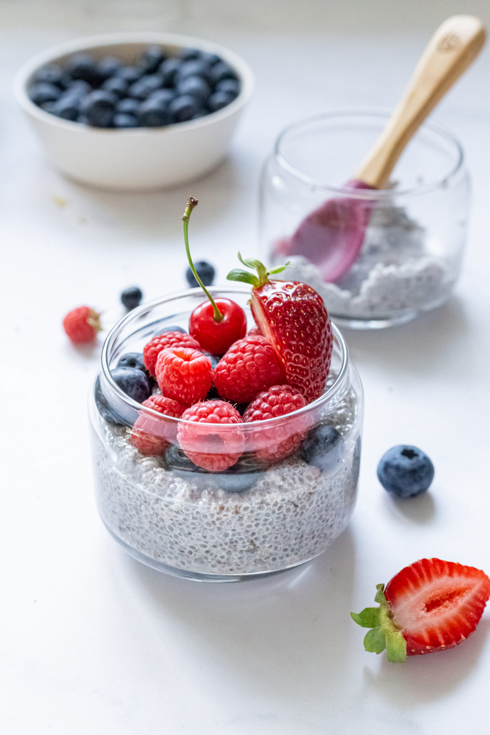 След годинка може да добавяте и цели плодчета към различни комбинации за ядене с лъжица като например тази от снимката, която включва рикота, малини и малко бадемов тахан.
